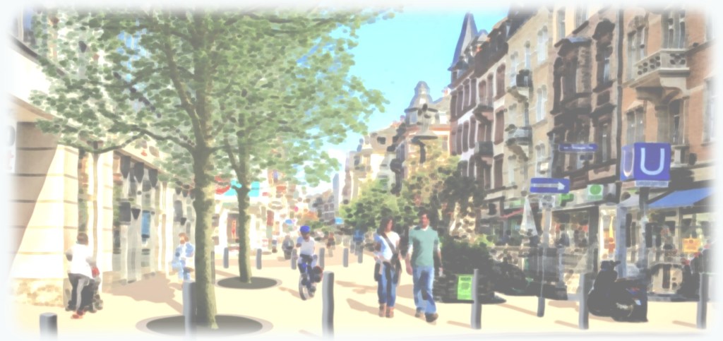 Die Bedingungen für das Gehen und Radfahren werden verbessert, ohne das Auto aus dem Viertel zu verdrängen.