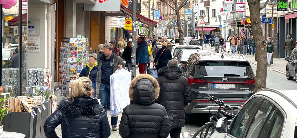 Zu Fuß schlängeln wir uns durch Straßen, deren Funktion auf Parkraum und Wege für den Durchgangsverkehr reduziert wurde. Beidseitig abgestellte Autos, die selbst kleinste Bereiche noch zum Parken nutzen, egal ob zulässig oder nicht. Keine Atmosphäre zum Verweilen, viel zu wenig Grün, Bäume und Bänke.