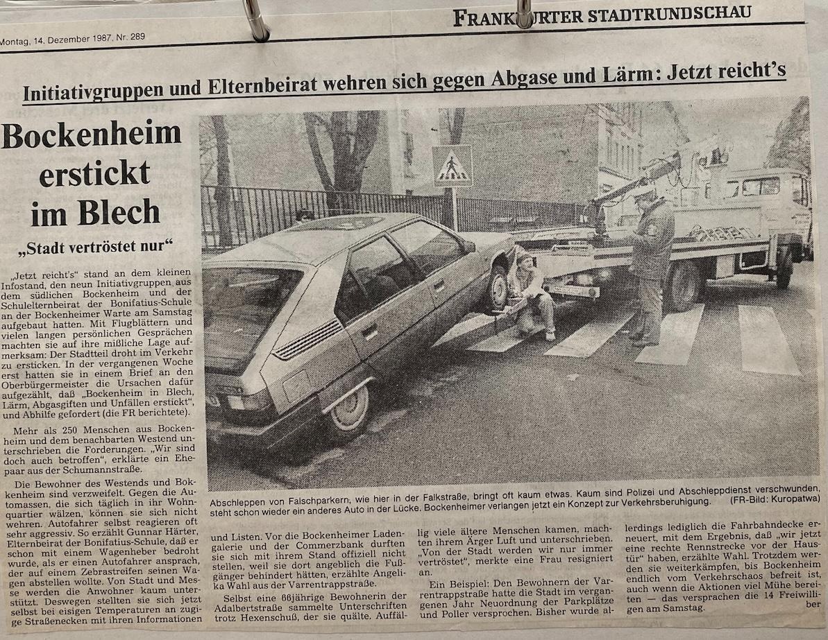 Schon vor über dreißig Jahren wehrten sich Bockenheimerinnen und Bockenheimer gegen Abgase und Lärm und verlangten ein Konzept zur Verkehrsberuhigung, wie die Frankfurter Rundschau berichtete.