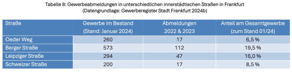 Eines der interessantesten Ergebnisse der wissenschaftlichen Evaluierung durch die Frankfurt University of Applied Sciences: Im Vergleich zu anderen Einkaufsstraßen in Frankfurt am Main, die nicht umgestaltet wurden, gibt es im Oeder Weg die wenigsten Geschäftsschließungen!