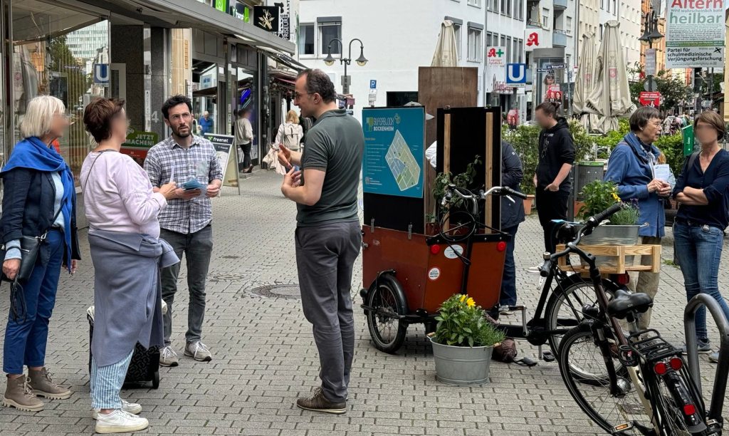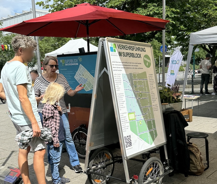 Mit einem gut besuchten mobilen Stand stellte die Regionalgruppe des VCD erneut die Ideen zum Bockenheimer Superblock vor.