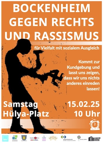 Bockenheimer Vereine, Initiativen und die Evangelische Gemeinde rufen zur Kundgebung auf dem Hülya-Platz auf, wir sind dabei: Sa., 15.2. um 10 Uhr.